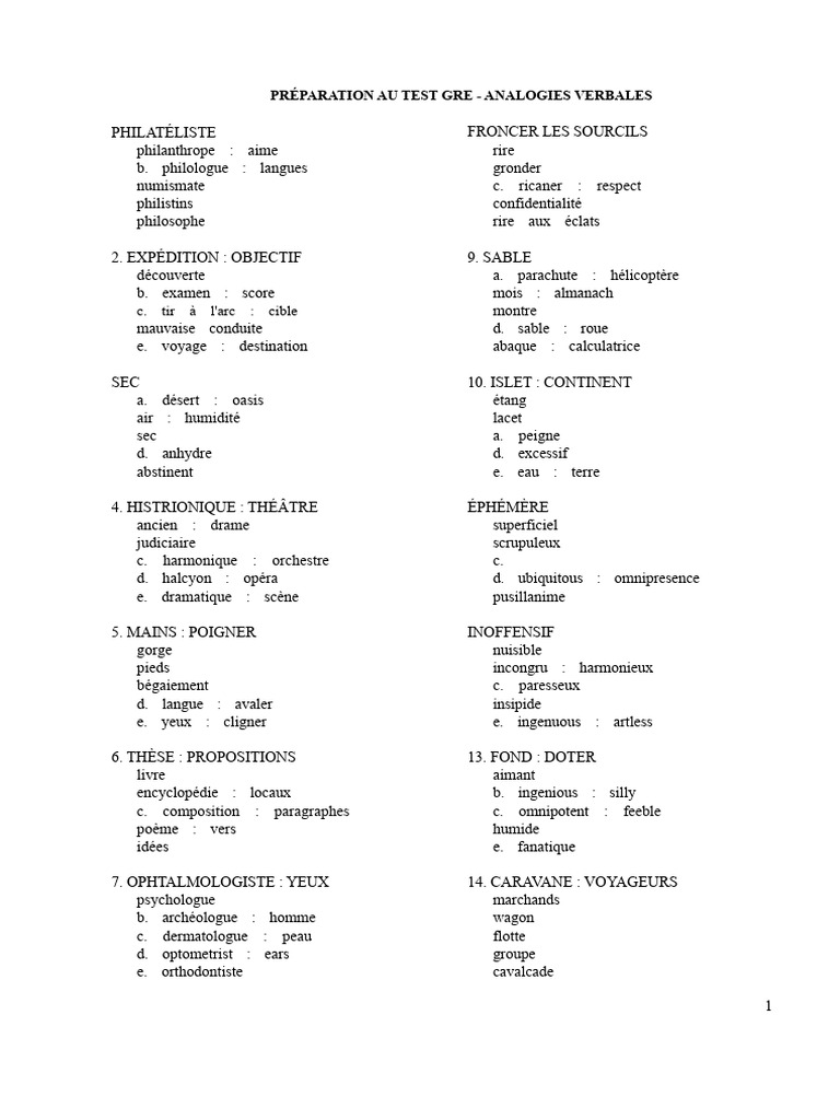 Analogies Verbales
