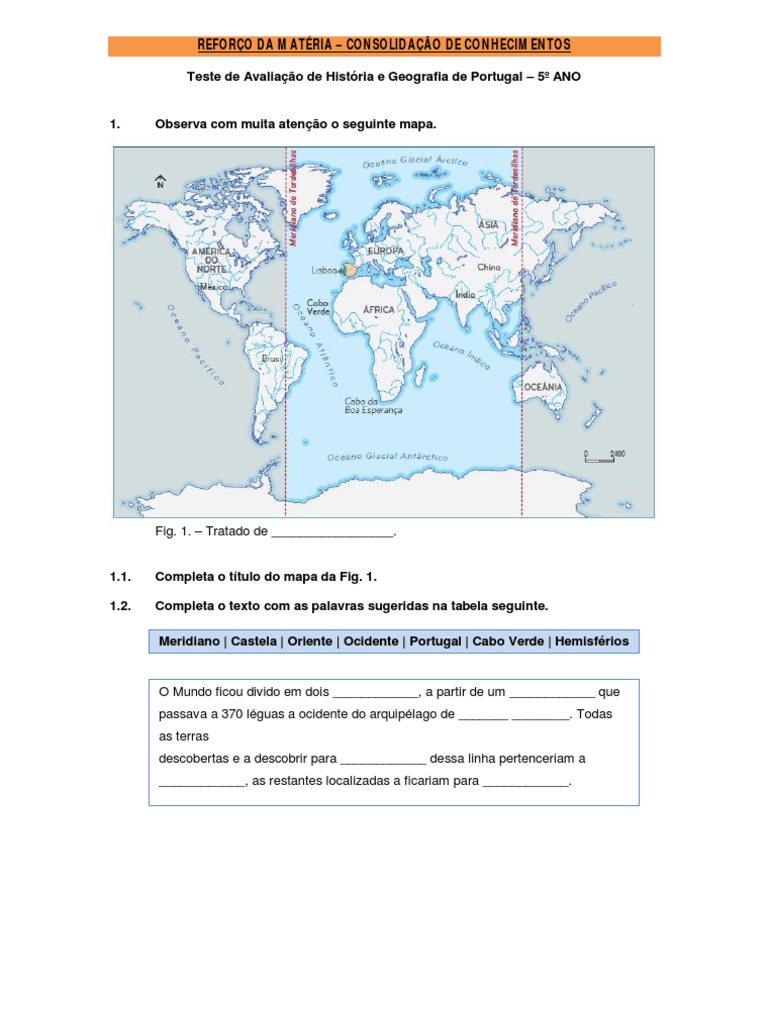 O Mundo ficou dividido em dois hemisférios, a partir de um meridiano que passava a 370 léguas a ocidente do |