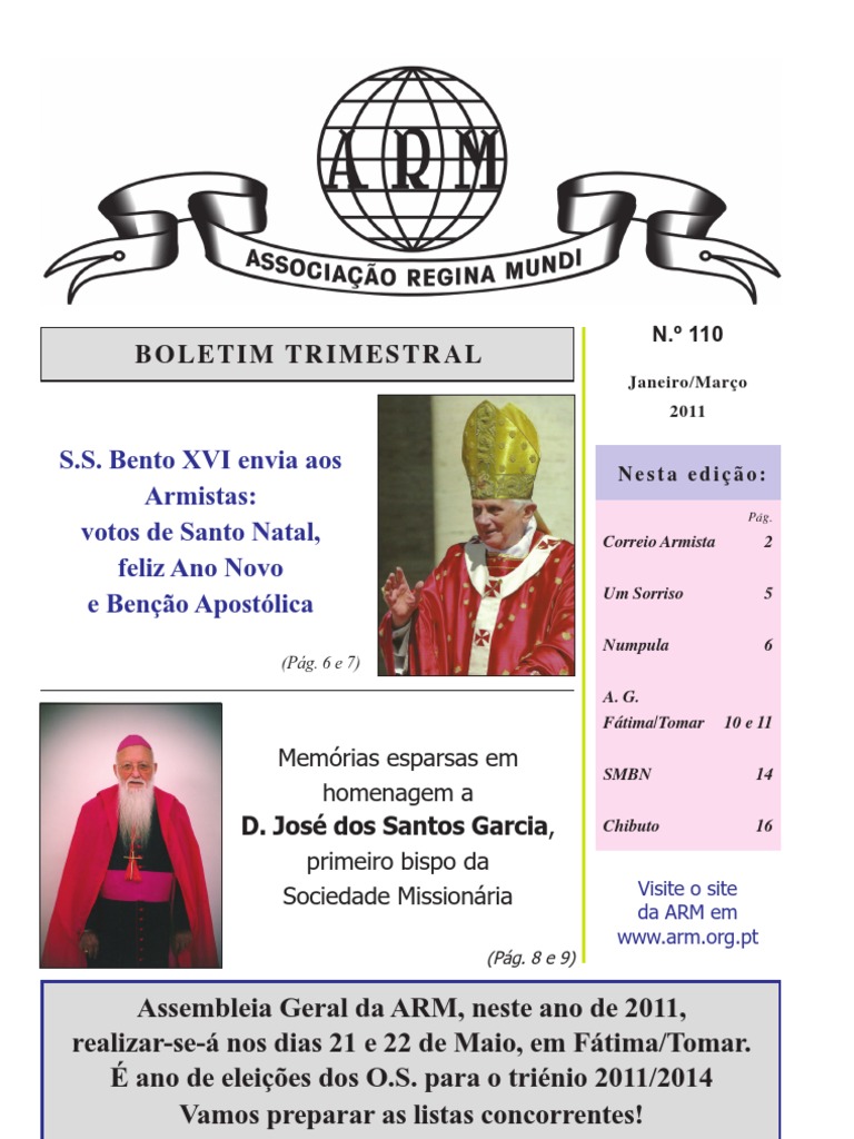 BOLETIM N. 110 Janeiro/Maro de 2011 ARM Associao Regina Mundi dos Antigos Alunos da Sociedade Missionria da Portuguesa