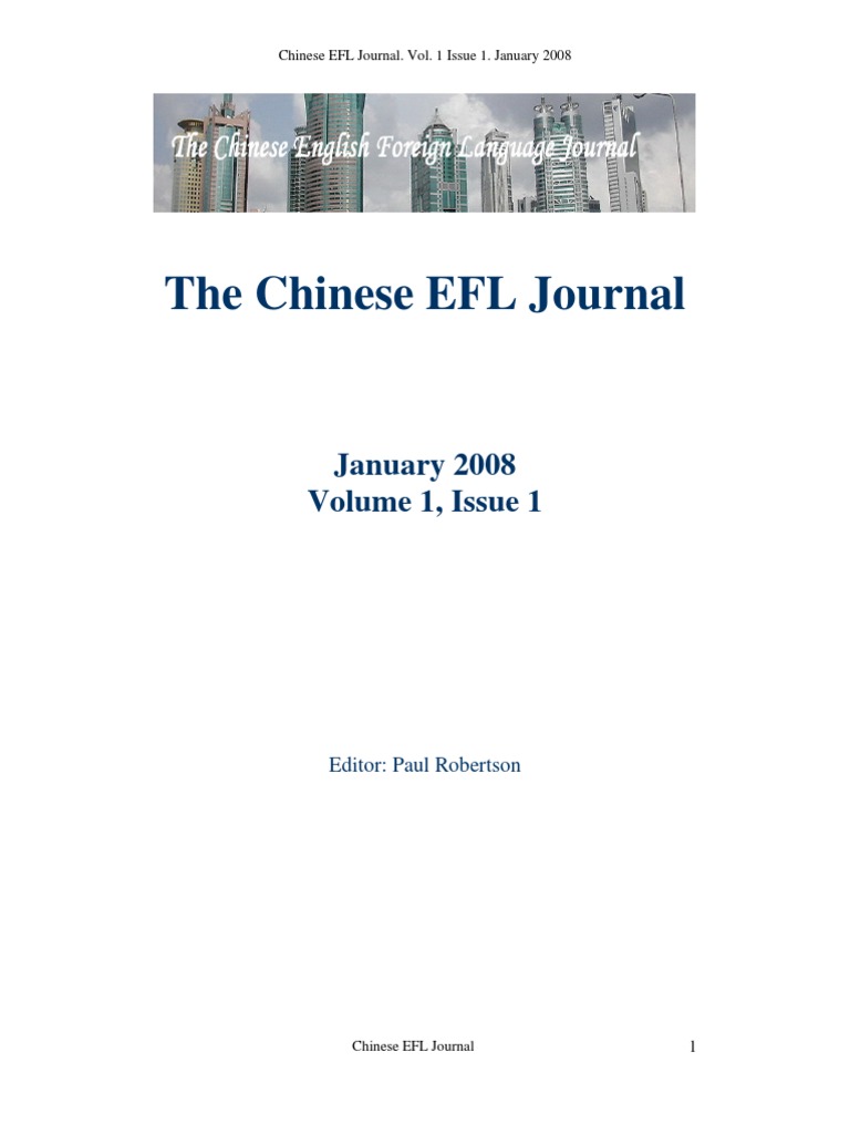 The Chinese EFL Journal January 2008 Volume 1, Number 1 Editor: Paul Robertson