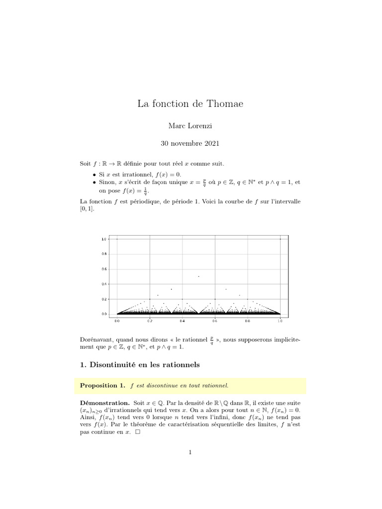 La fonction f est périodique, de période 1. Voici la courbe de f sur l’intervalle