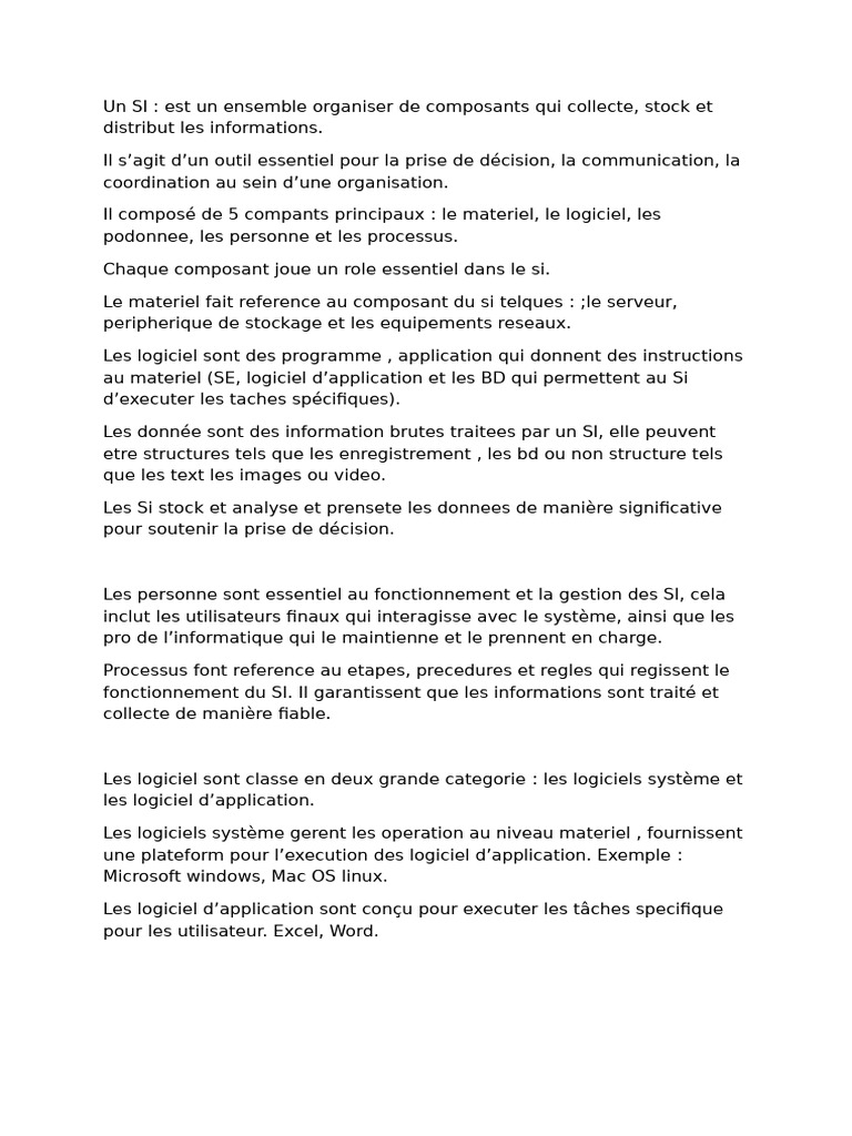 De plus le SI repose sur les SGBD pour stocker organiser et récupérer des