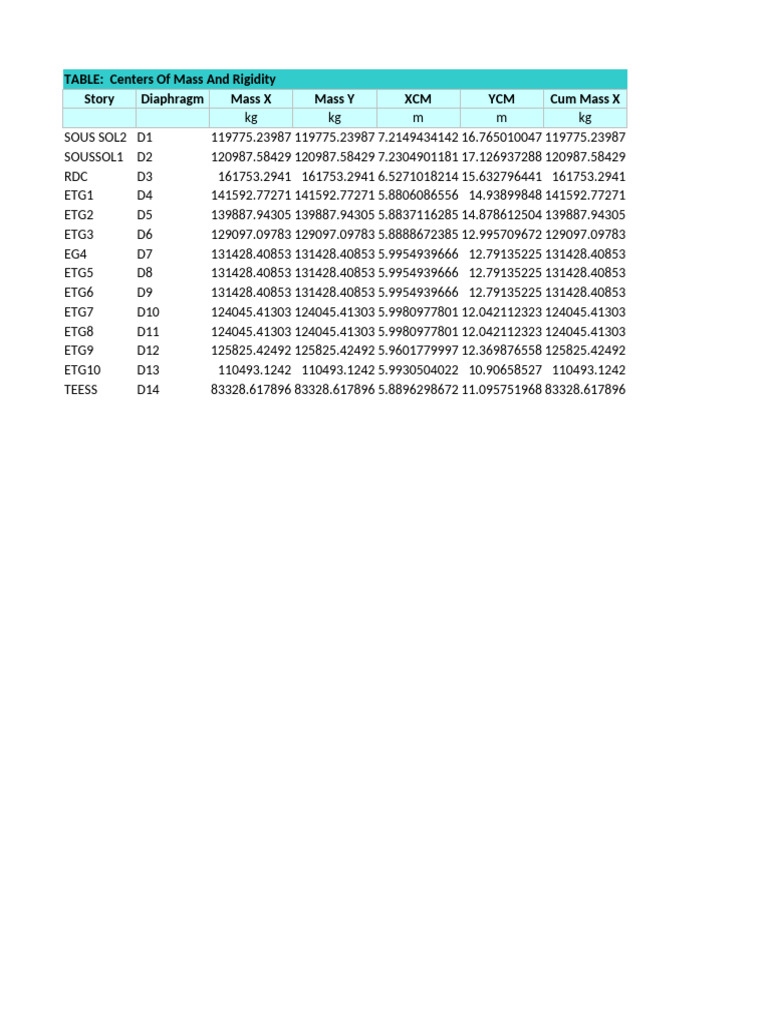 Story Diaphragm Mass X Mass Y XCM YCM Cum Mass X