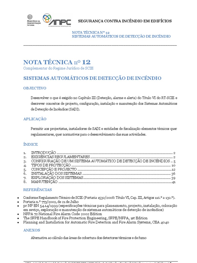 NOTA TÉCNICA Nº 12 SISTEMAS AUTOMÁTICOS DE DETECÇÃO DE INCÊNDIO