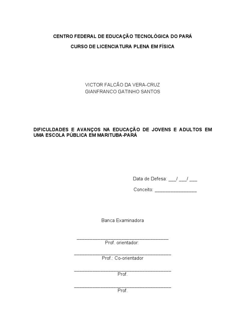 APNDICE C Centro Federal de Educao Tecnolgica do Par Diretoria dos Cursos Superiores Coordenao de Licenciatura Em Fsica