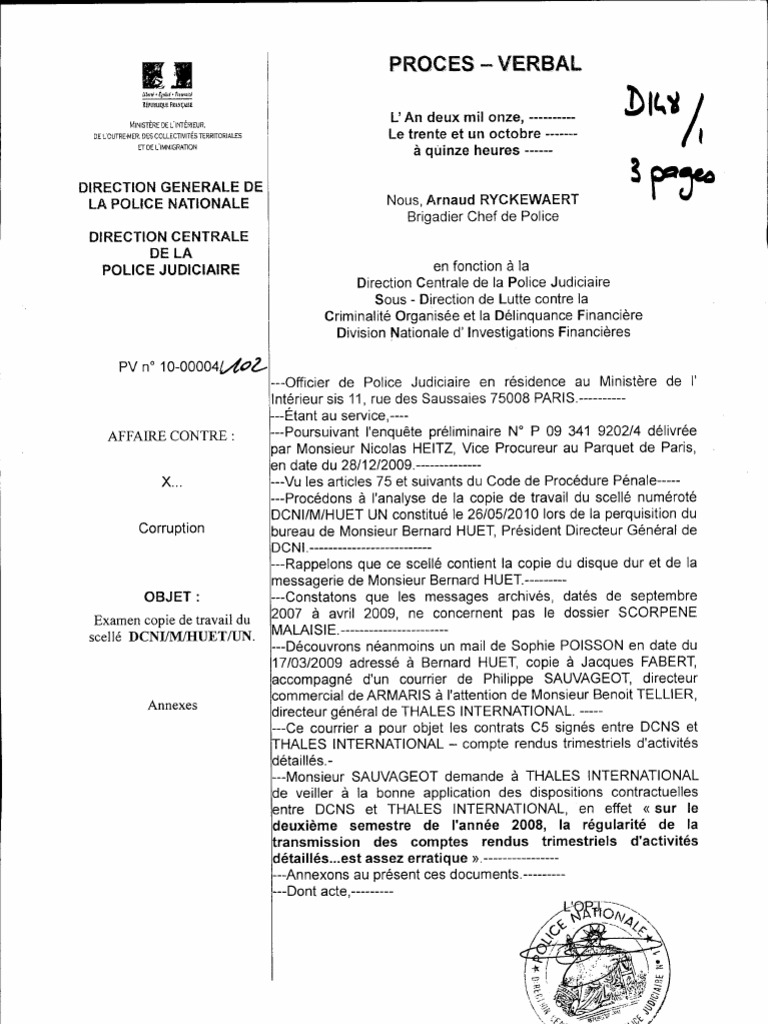 2007 avril 2009, ne concernent pas le dossier SCORPENE MALAISIE.-------------------------Dcouvrons nanmoins un mail de Sophie POISSON en date du 17/03/2009 adress Bernard HUET, copie Jacques FABERT, accompagn d'un courrier de Philippe SAUVAGEOT, directeur