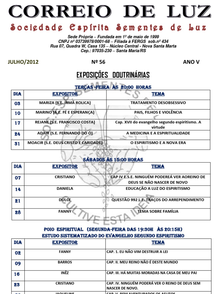 Seus Objetivos Promover o Estudo, a Difuso e a Prtica da Doutrina Esprita, atendendo e ajudando as pessoas: