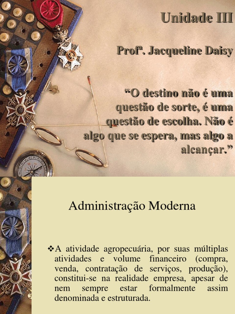 Profª. Jacqueline Daisy “O destino não é uma questão de sorte, é uma questão de escolha. Não é algo que se espera, mas algo a alcançar.”
