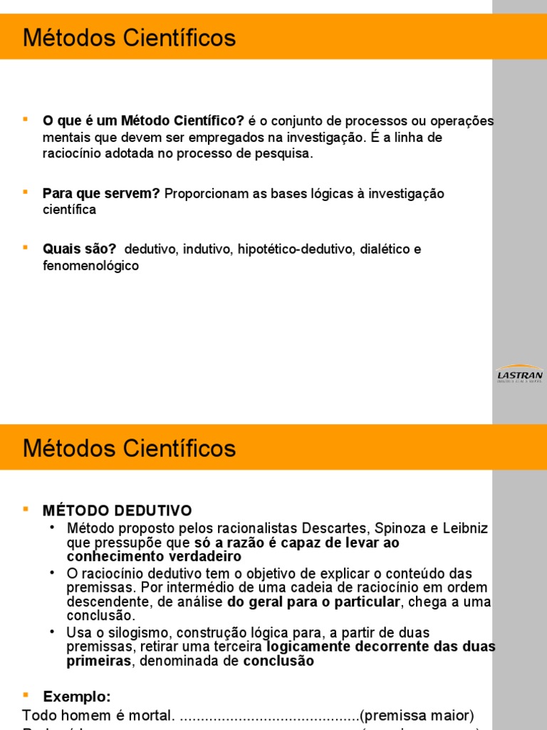 O que é um Método Científico? é o conjunto de processos ou operações