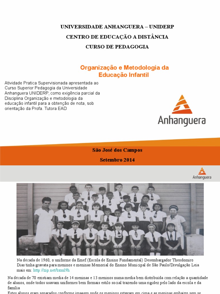 já os meninos todos estão com a feição de poucos amigos.Na década de 1960. Alguns até esboçavam uma vontade de sorrir no caso as meninas mas devido a rigidez no ensino.net/bxml9h Na década de 70 existiam media de 14 meninas e 13 meninos numa media bem distribuída com relação a quantidade de alunos. tentando mostrar que o sexo masculino na época era como lideres e referencia para a sociedade. onde todos usavam uniformes bem formais estilo social trazendo uma rigidez pelo lado da escola e da família Estes alunos eram separados conforme imagem onde os meninos estavam em cima e as meninas embaixo sem se misturarem e todos com uma expressão pouco alegre e medo de se exporem. 2 . normas escolares e familiares acabavam ficando com a face entristecida conforme imagem. o uniforme da Emef (Escola de Ensino Fundamental) Desembargador Theodomiro Dias tinha gravata para meninos e meninas Memorial do Ensino Municipal de São Paulo/Divulgação Leia mais em: http://zip.