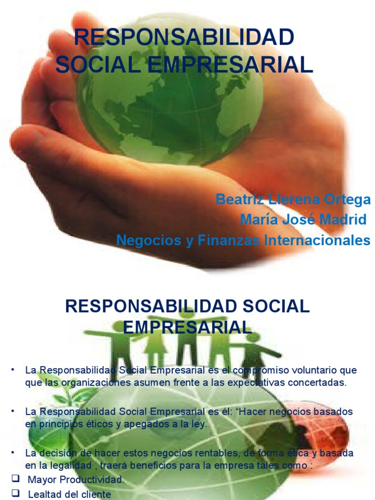 ya que precisamente la responsabilidad social impulsa el fortalecimiento de la empresa y la lealtad de los consumidores hacia una determinada marca El éxito del negocio esta en saber mantener un balance y una coherencia entre la visión. Sin embargo. tanto empresarios como gerentes están más conscientes y sensibles ante la verdadera magnitud de los problemas sociales. La tendencia hoy en día es alinear e integrar iniciativas sociales con la actividad empresarial. durante los últimos años ha adquirido un mayor auge ya que. la imagen de la compañía mejora de una manera inimaginable. Cuando los empresarios alinean su negocio con actividades sociales.LAS EMPRESAS Y LA RSE La responsabilidad social empresarial no es nada nuevo. los valores y las estrategias de la empresa. . la misión.