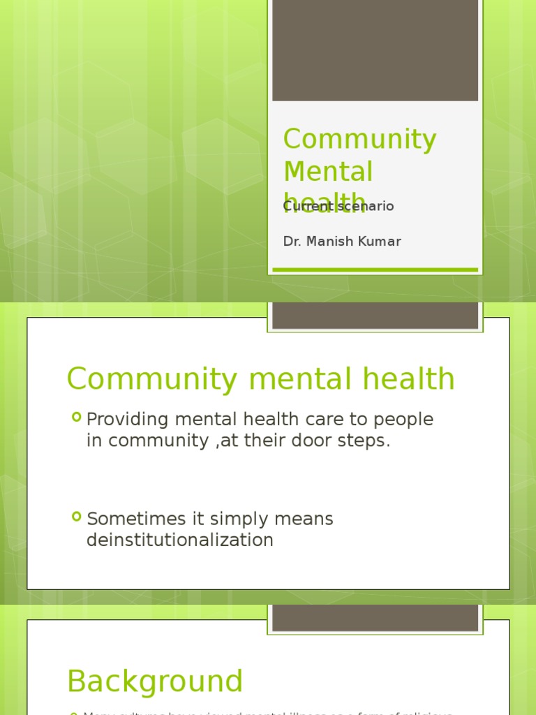 1975. Dr R. that a crash programme for community based mental health was introduced at NIMHANS. Minister of Health.4 Important Movements in Community Mental Health in India Dr Vidya Sagar. This unit launched the following experimental programmes: .Varma and that of Dr Karan Singh.Amritsar Mental Hospital and Deinstitutionalisation:General Hospitals psychiatric units:The NIMHANS Crash Programme:-It was at the initiative of the director. A community psychiatry unit was also started in October.M. central government.