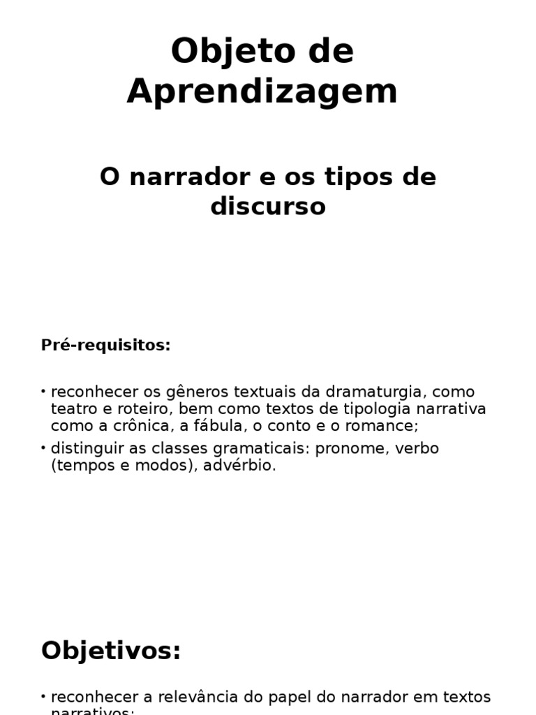 reconhecer a relevncia do papel do narrador em textos