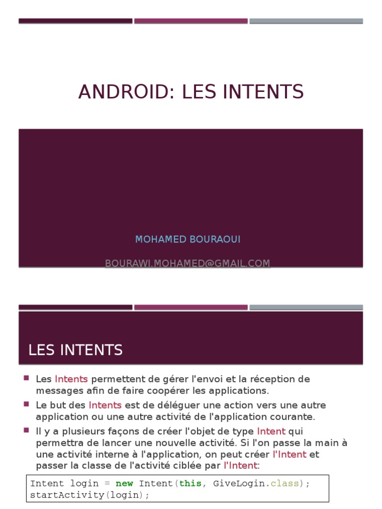 ANDROID: LES INTENTS