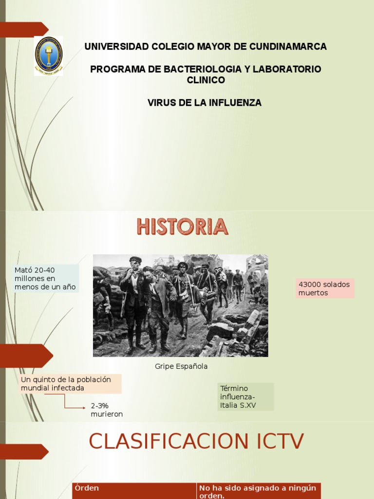 Familia Orthomyxoviridae Género Influenzavrius . CLASIFICACION ICTV Órden No ha sido asignado a ningún orden.