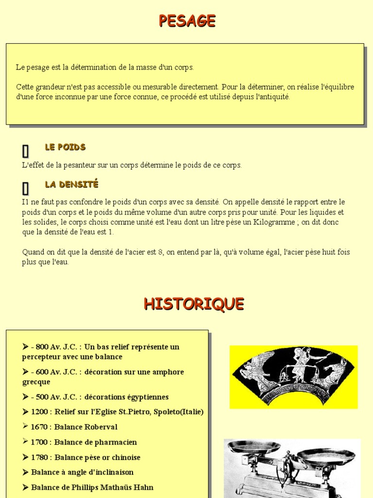 d'une force inconnue par une force connue, ce procd est utilis depuis l'antiquit.