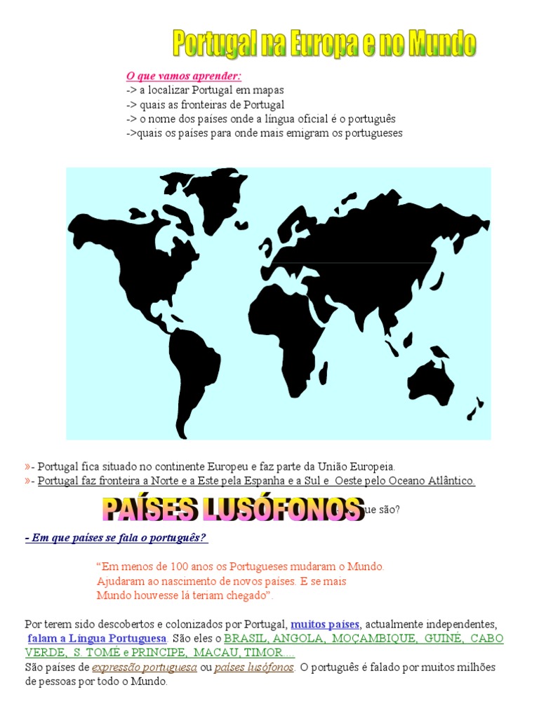 falam a Língua Portuguesa. São eles o BRASIL, ANGOLA, MOÇAMBIQUE, GUINÉ, CABO