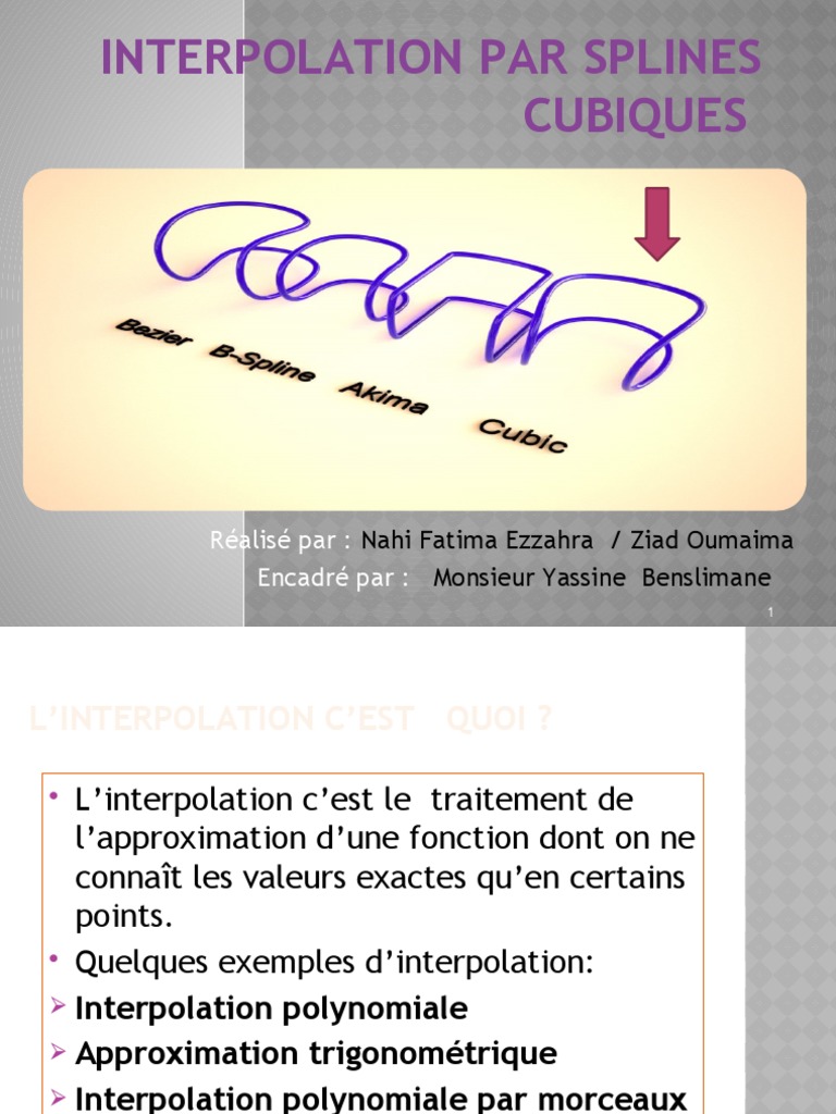 Les splines d’interpolations cubiques (degré k = 3) sont