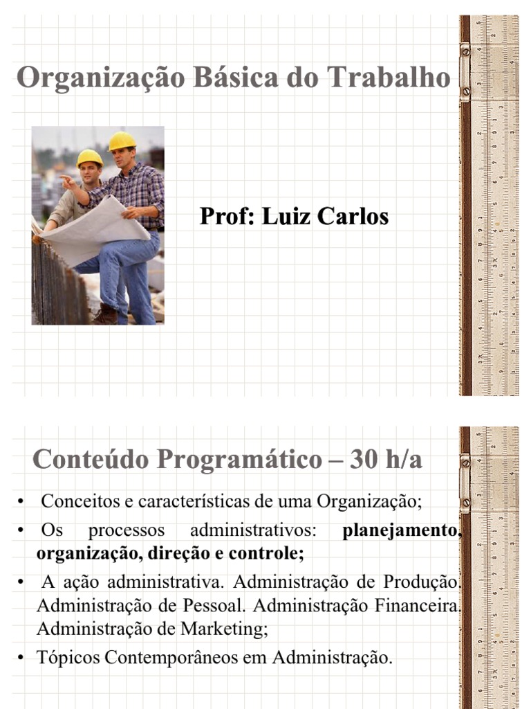 Identificar as diversas formas de organizao do trabalho. Identificar e avaliar tipos e modelos de planejamentos, buscando atualizao e inovao; Definir o padro e a natureza das informaes a serem levantadas nos processos administrativos; Ter noes de planejamento, desenvolvimento e acompanhamento do trabalho em suas diferentes etapas; Conhecer os fundamentos, os objetivos, a estrutura, a organizao e o funcionamento de uma Empresa ou Instituio.