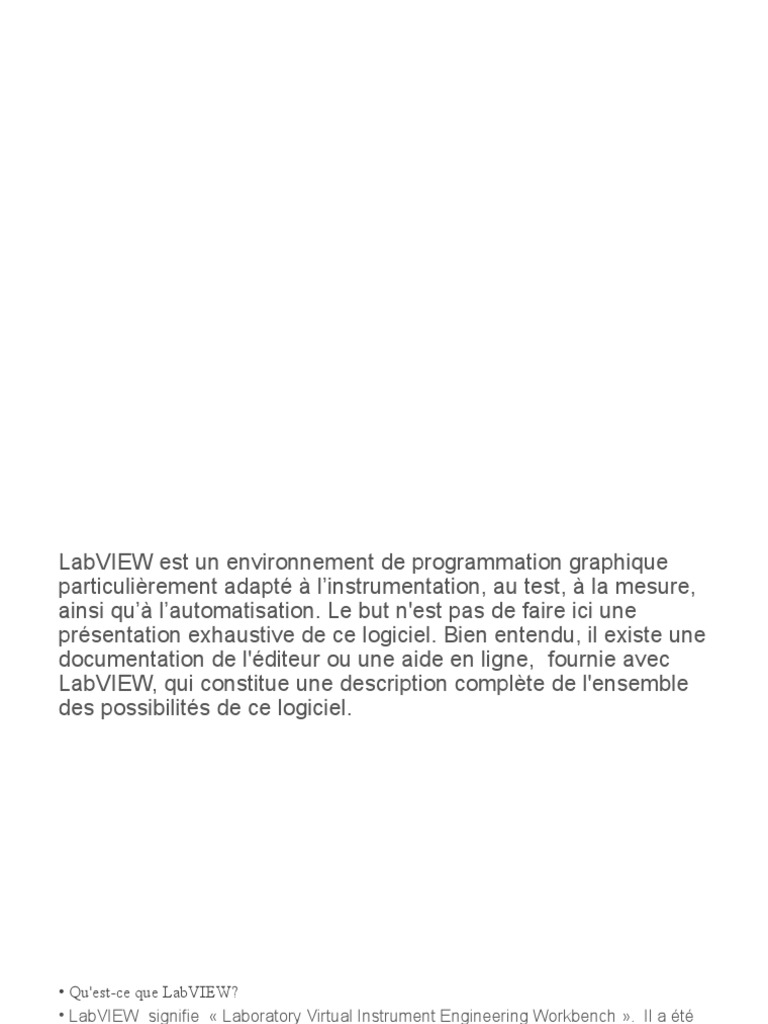 • LabVIEW signifie « Laboratory Virtual Instrument Engineering Workbench ». Il a été