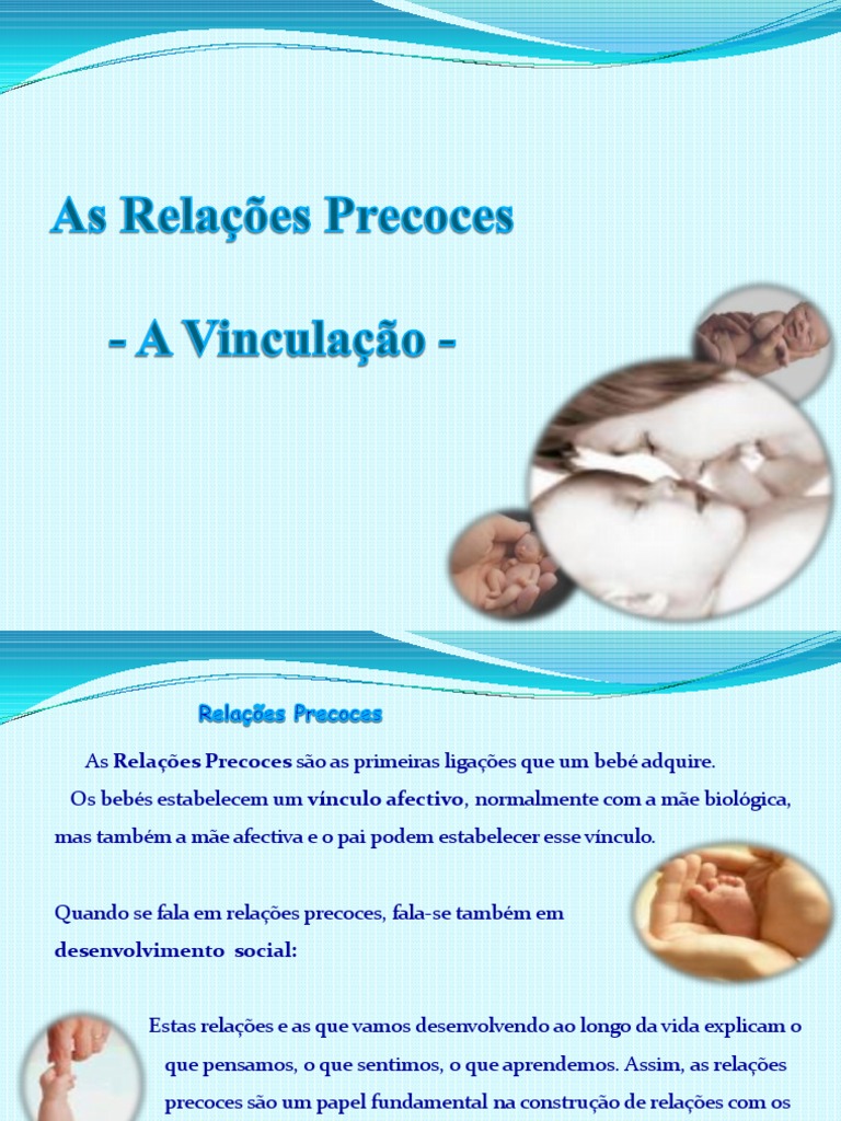 A ligao que o beb ir estabelecer com a me servir de base e de molde para futuras relaes da criana.