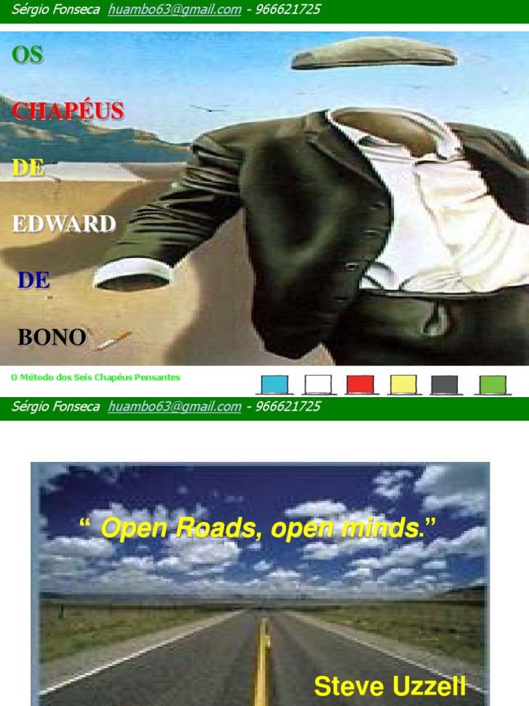 Se o indivduo acredita que h sentimentos fortes sobre um assunto, devia comear sempre o pensamento com o chapu vermelho para exteriorizar esses sentimentos.