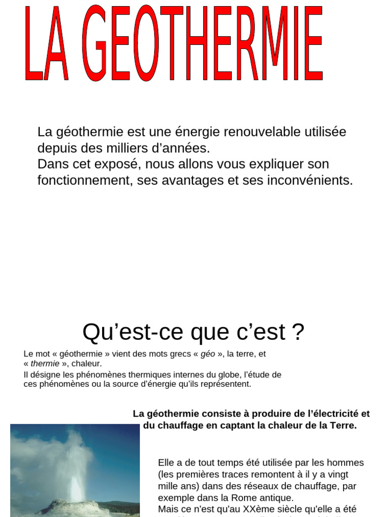 DE LA GEOTHERMIE : LES