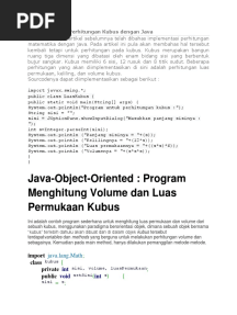 Program Java Hitung Volume dan Luas KubusPDFProgram Java Hitung Volume dan Luas KubusAjouté par Anggit Permana0 évaluationfunction cn(e,t){var n=e+t;return n<=0?0:Math.round(e/n*100)}% ont trouvé ce document utileEnregistrer Program Java Hitung Volume dan Luas Kubus pour plus tard