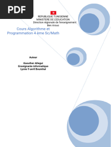 Cours d'Algorithme et ProgrammationPDFCours d'Algorithme et ProgrammationAjouté par boukthir03100% (2)function cn(e,t){var n=e+t;return n<=0?0:Math.round(e/n*100)}% ont trouvé ce document utileEnregistrer Cours d'Algorithme et Programmation pour plus tard